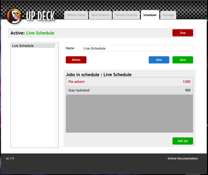 Once a schedule is running, the active jobs run at their set intervals. To stop the schedule just click the 'Stop' button.