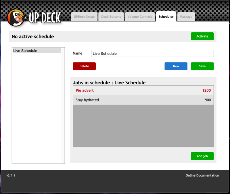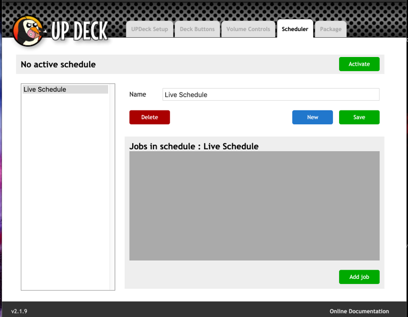 You can set up multiple schedules, but only have one running at a time. Now that you have a schedule, you can add jobs to it with the 'Add job' button.
