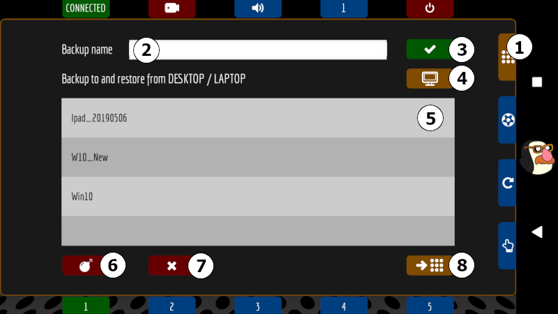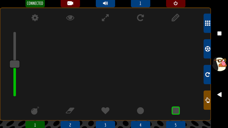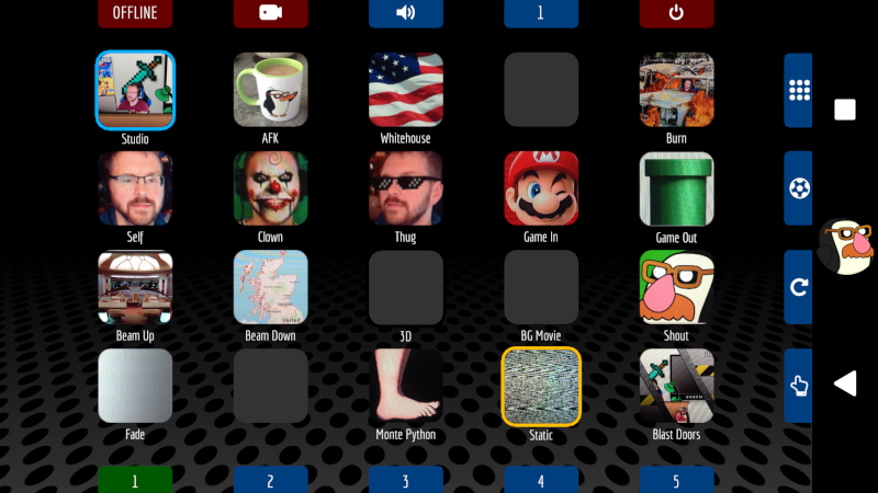 The next screen is the main interface and it's from here that you connect to the desktop app. The button at the top left of the screen shows the current status - OFFLINE. When you tap this button, it turns amber as the app attempts to connect and then green, showing a connected status. If connection fails, double check the host address is correct, and that the port number and password match those set up in the desktop app. The red button at the top right returns you to the previous screen.
