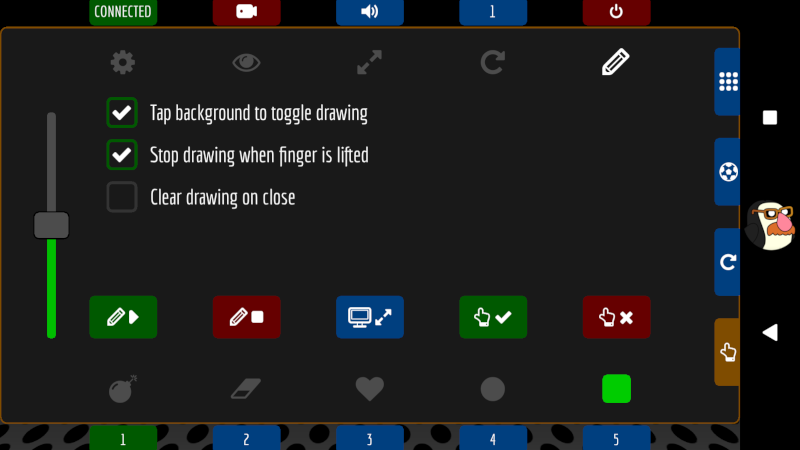 The third config button accessed by pressing the heart icon lets you input the width and height of your stream. This allows the drawing to match the position of the pointer on screen - the defaults are 1280 x 720.
