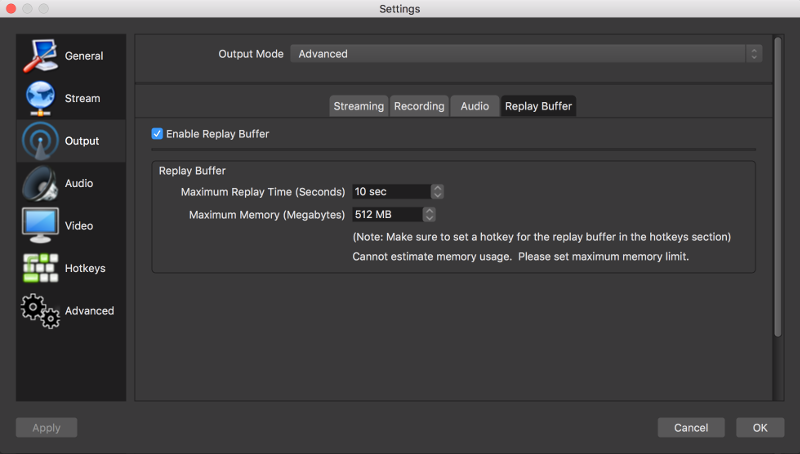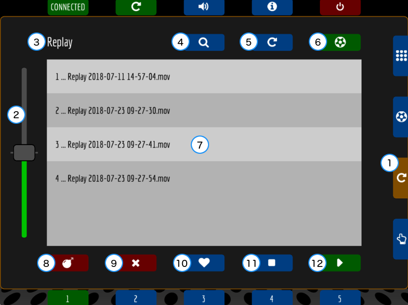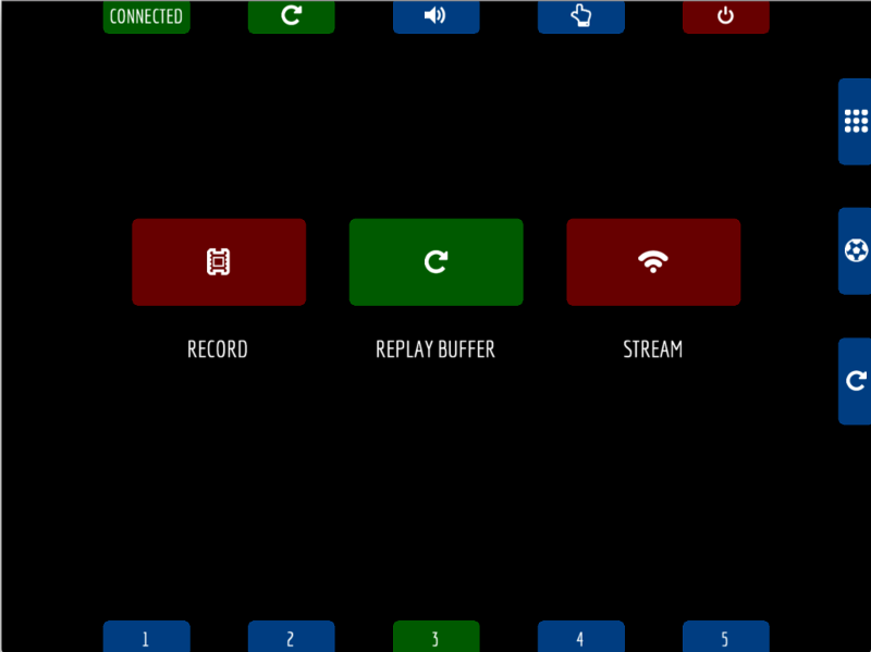The second button along the top of the screen shows and hides the control panel to start and stop recording, replay buffer (for action replays) and streaming.